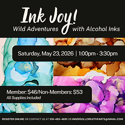 Get ready to indulge your creativity as we play and explore with vibrant colours and exotic “papers”. Alcohol inks are a very different medium than traditional paints, offering exciting and often unpredictable outcomes; the possibilities are as vast as your imagination! Perfect for beginners as well as more advanced artists who are interested in experimenting with a fun and fearless art form. We will use a variety of non-porous surfaces to explore the impact and versatility of these beautiful transparent inks, as they mingle and flow to produce a piece of art that will bring you joy! Members: $46 Non-members: $53 All supplies included